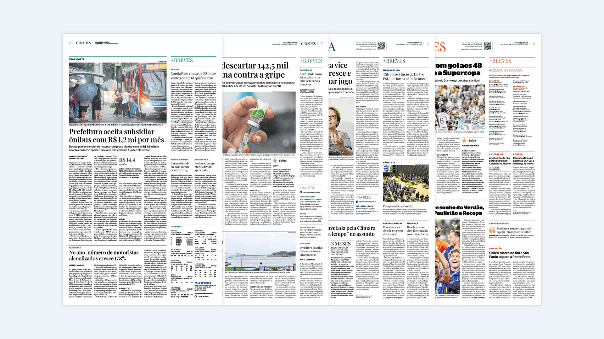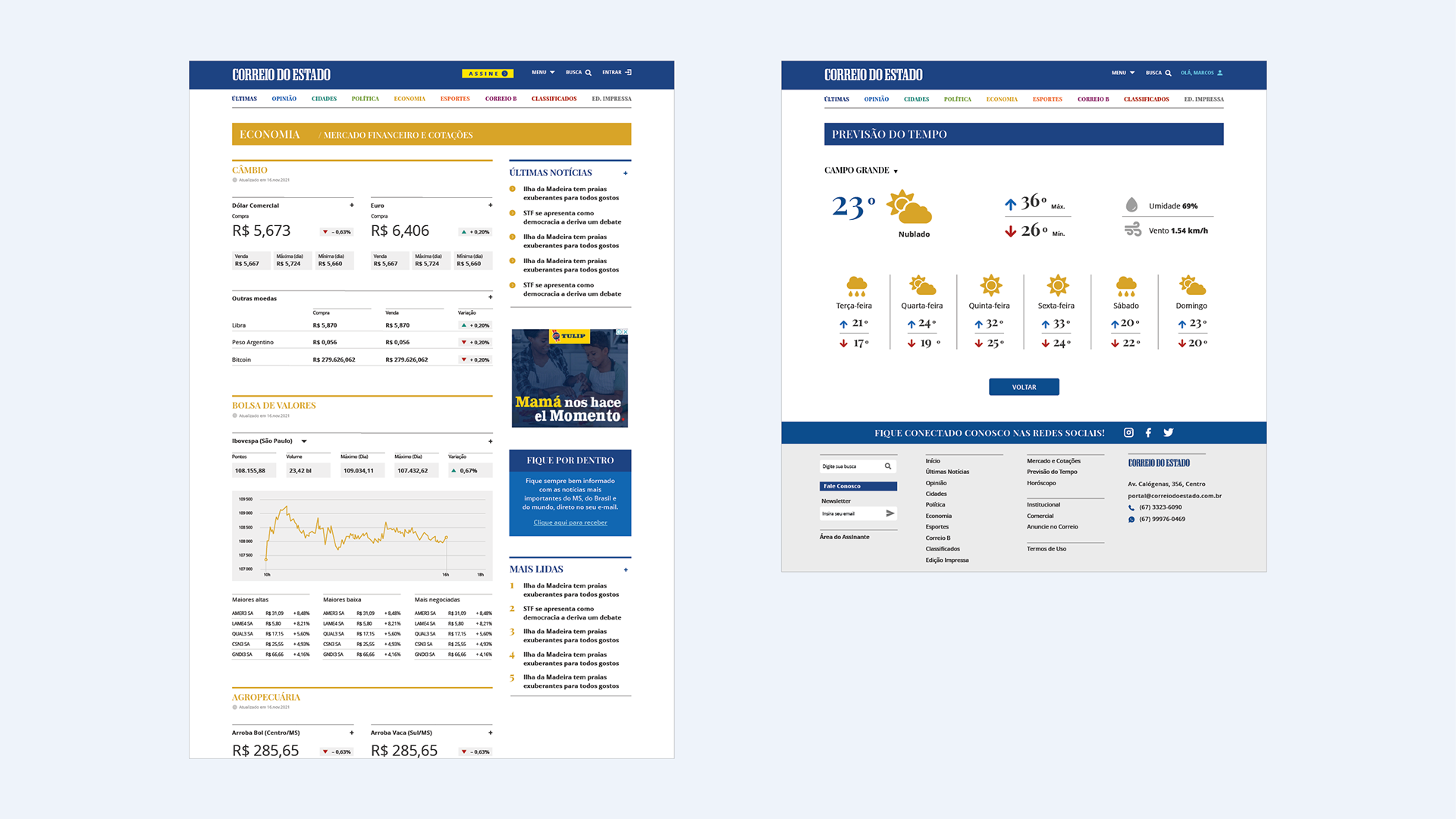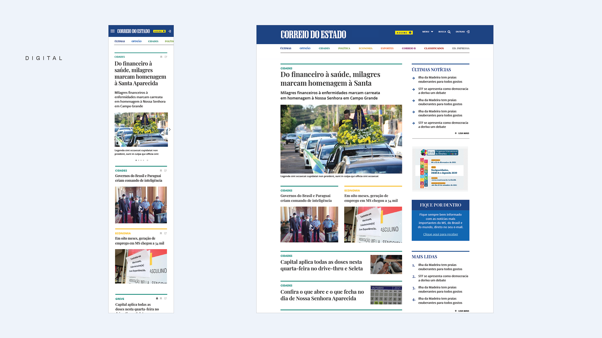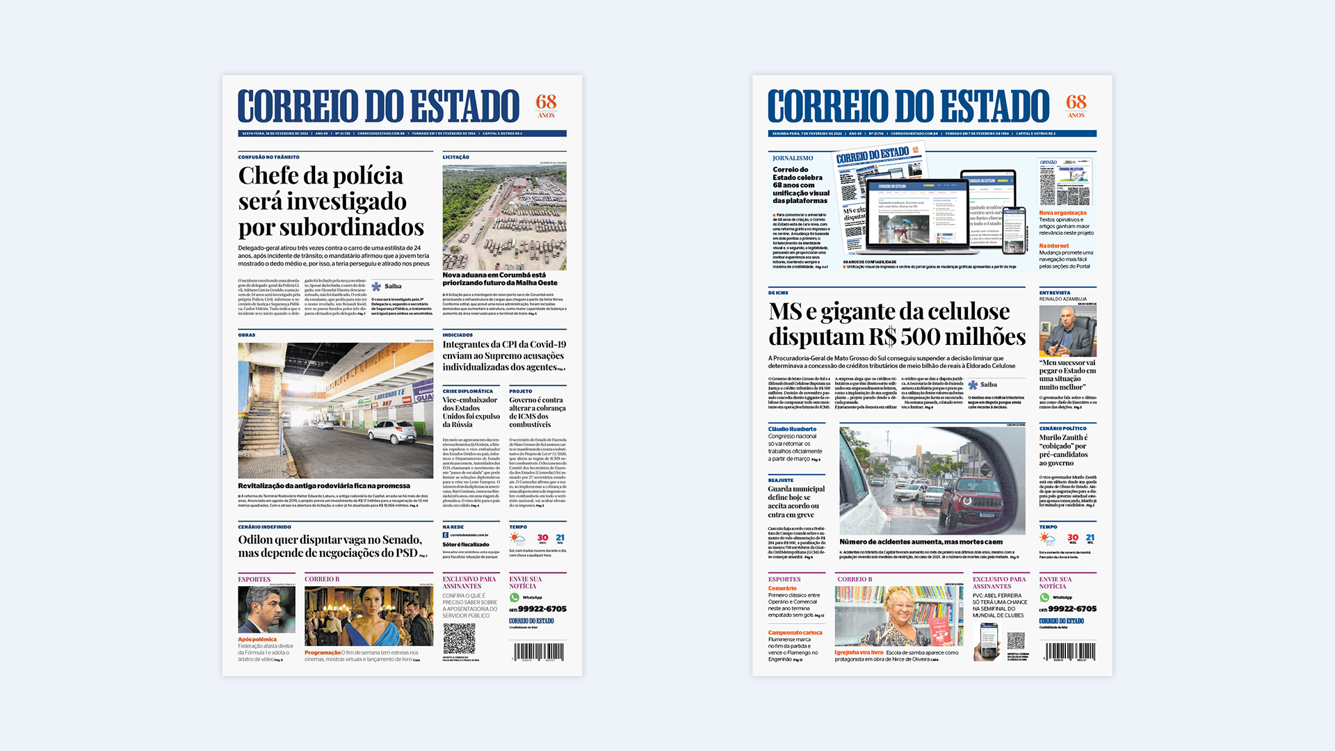 Projeto e reforma gráfica para unificação da linguagem gráfica nas versões digital e impressa, do jornal diário do Mato Grosso do Sul. Com Daniela Fontineli.