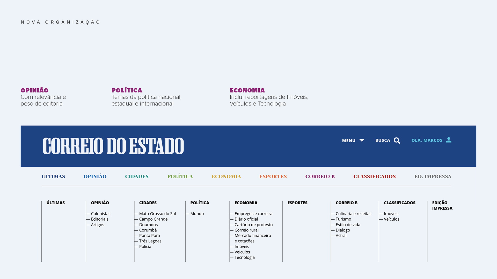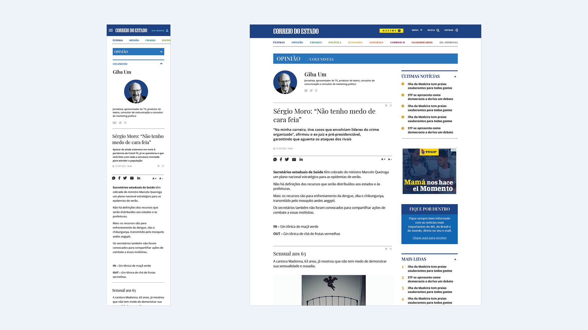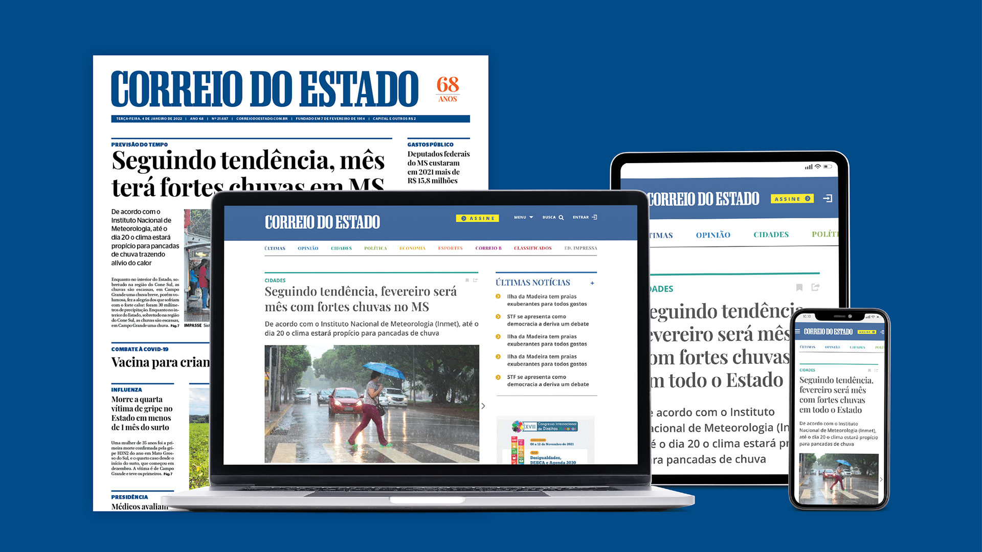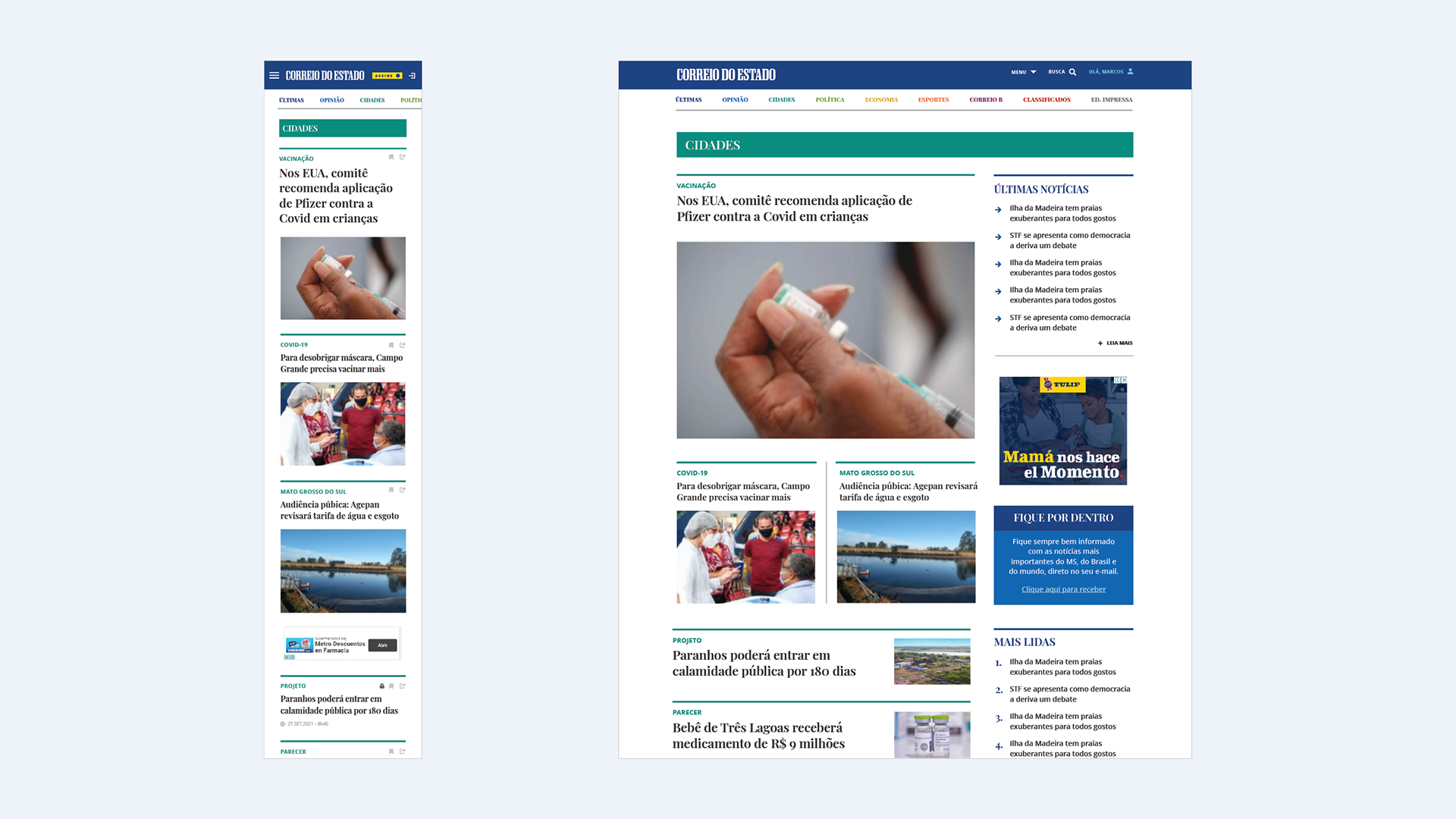 Projeto e reforma gráfica para unificação da linguagem gráfica nas versões digital e impressa, do jornal diário do Mato Grosso do Sul. Com Daniela Fontineli.