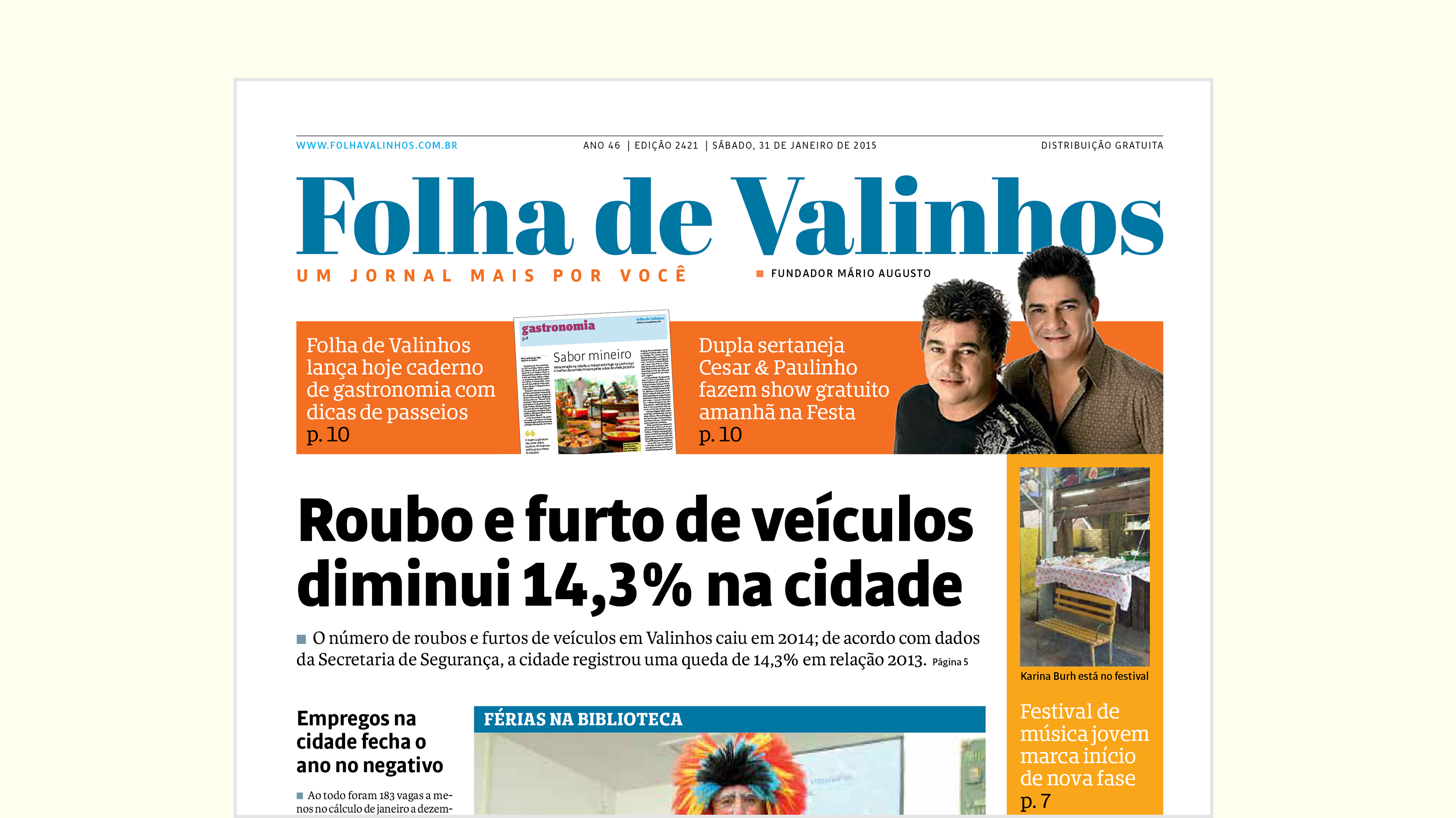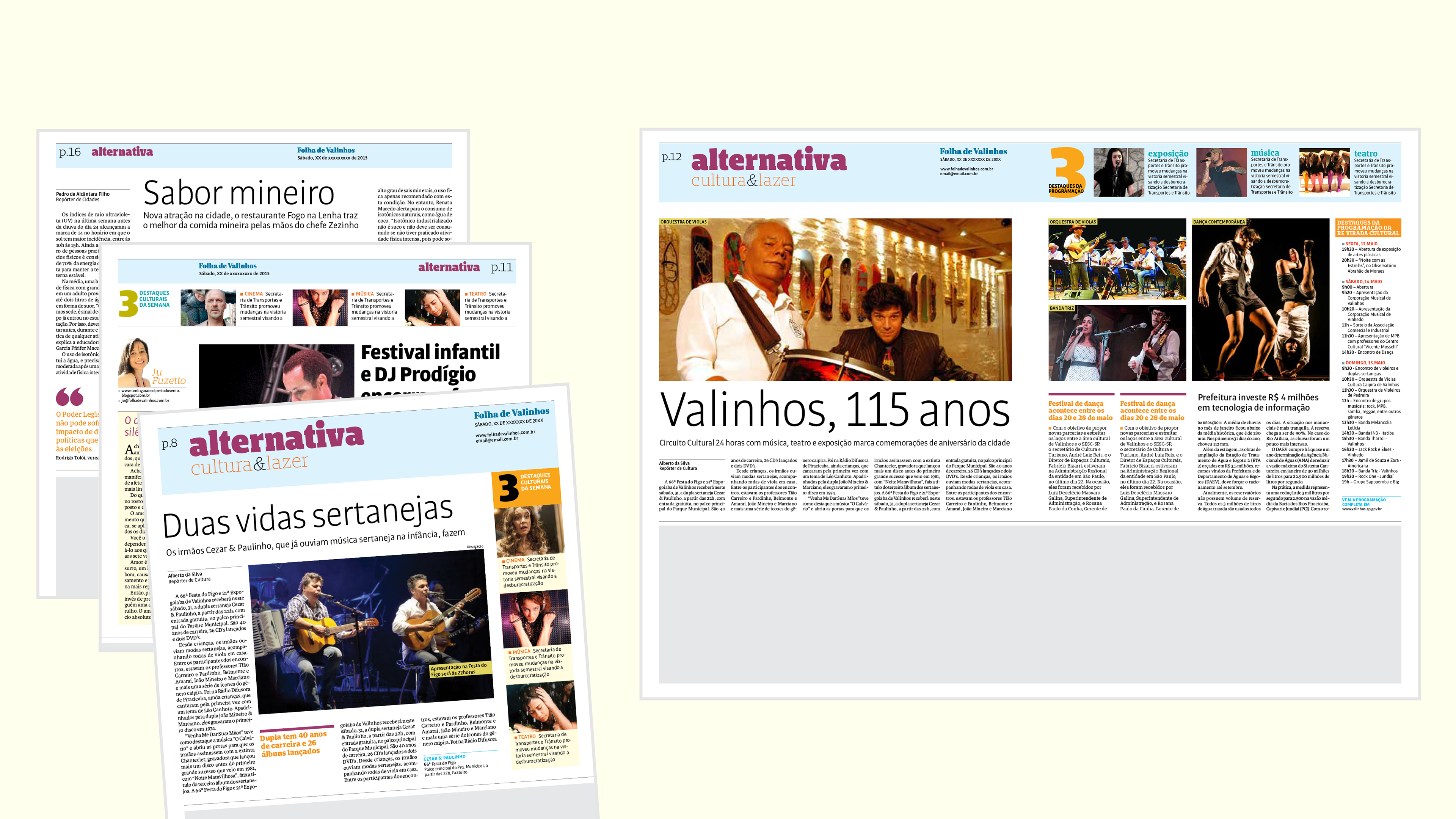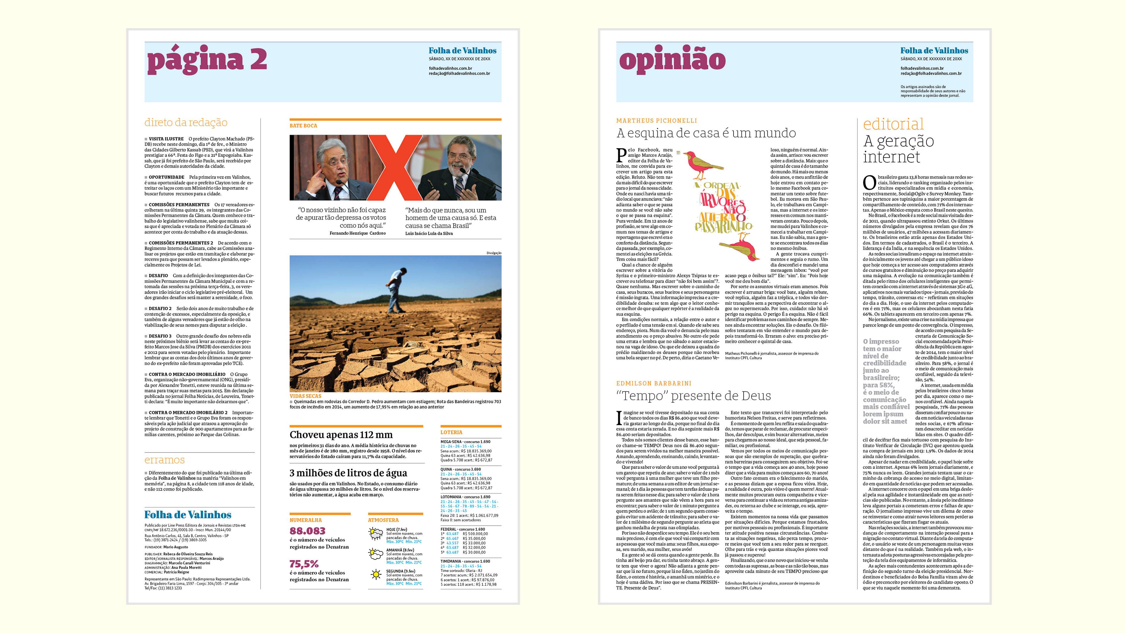 Desenvolvimento de projeto gráfico e nova linguagem visual para o jornal semanal de Valinhos, interior de São Paulo. Realizado em parceria com a Notext.