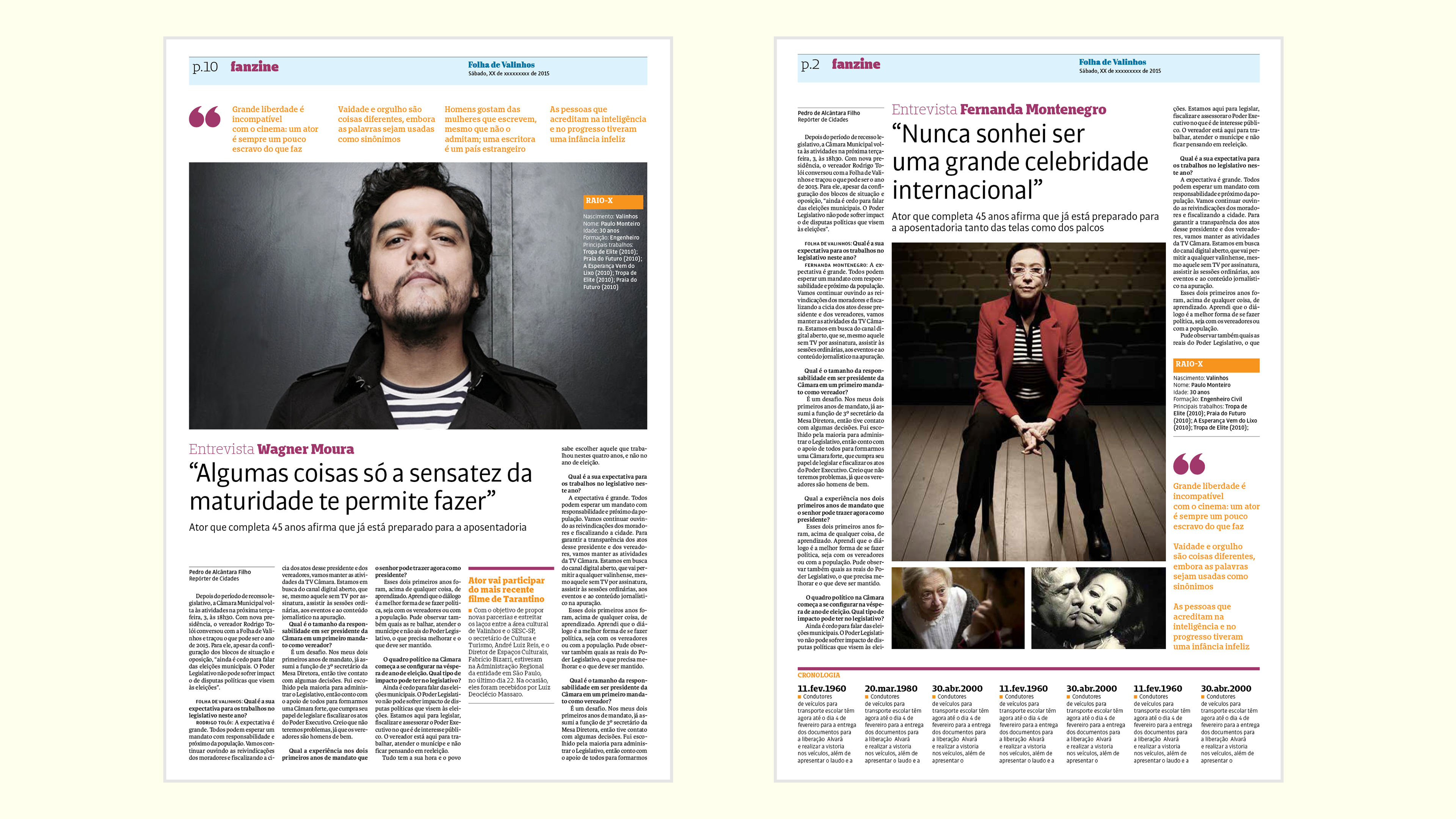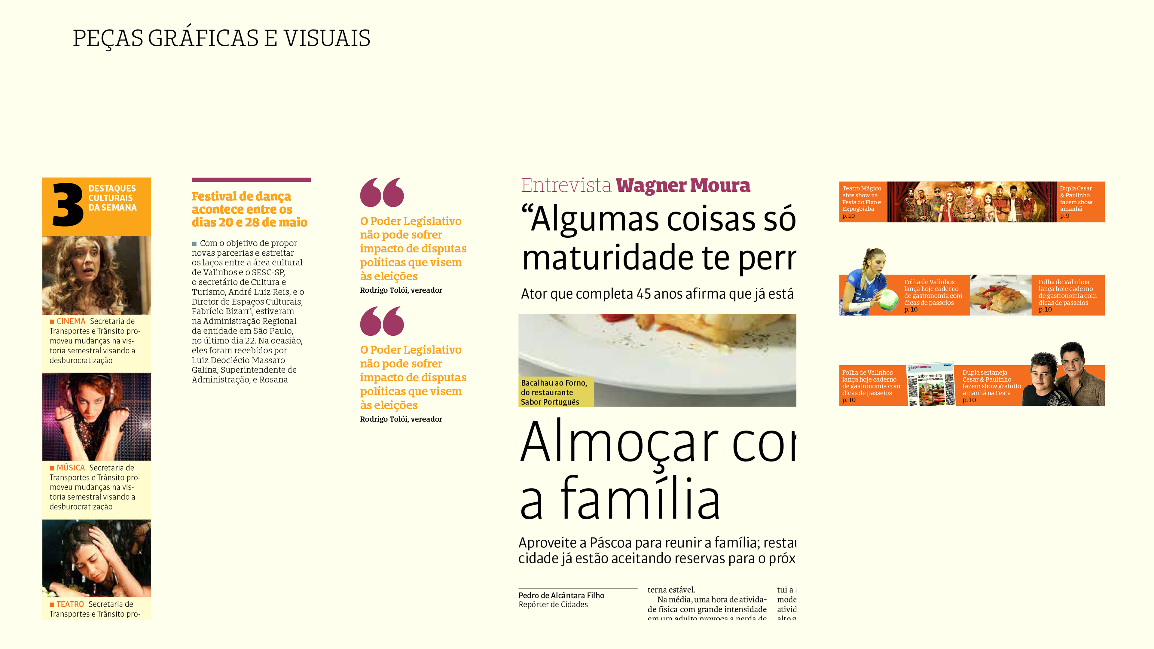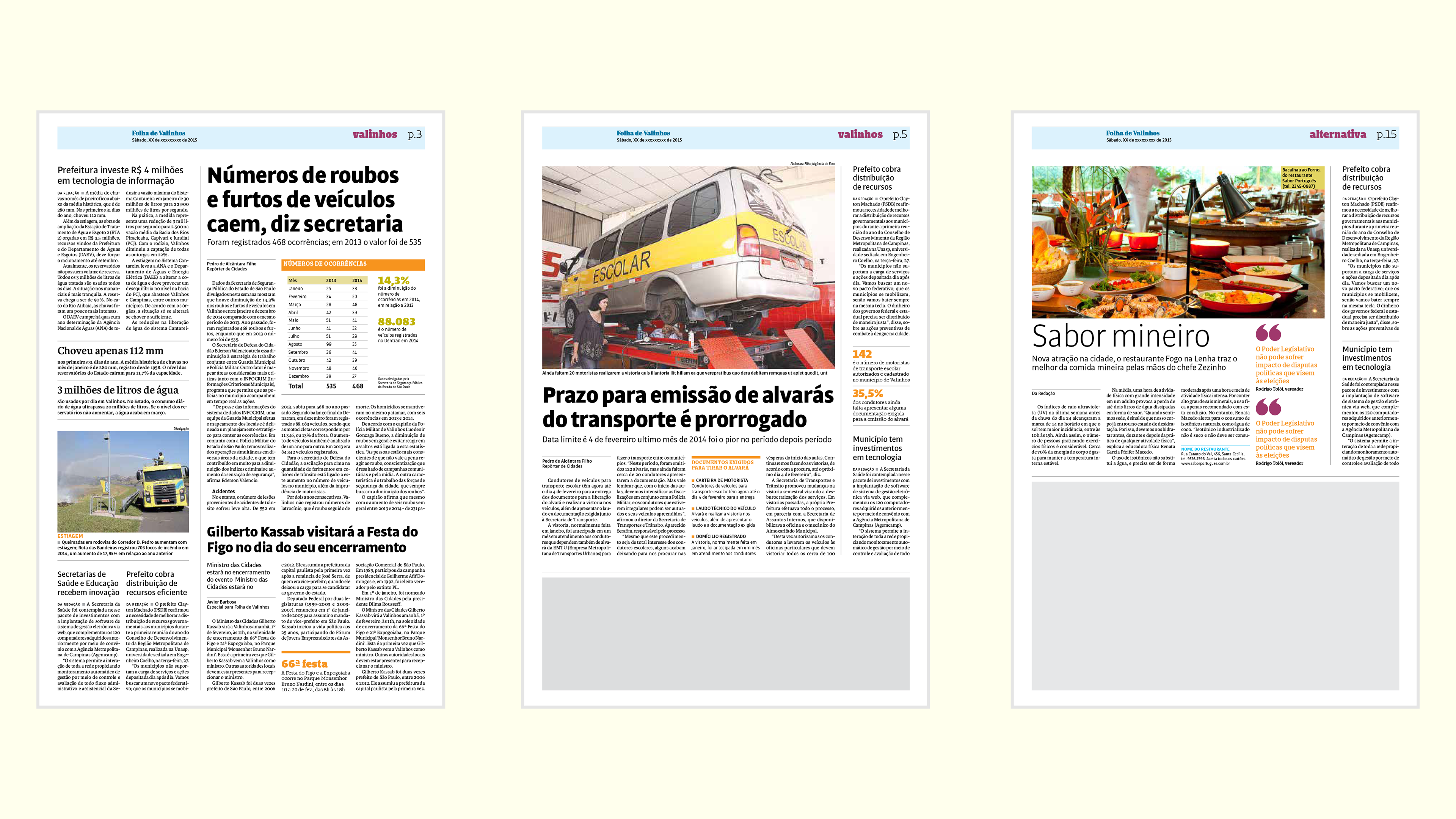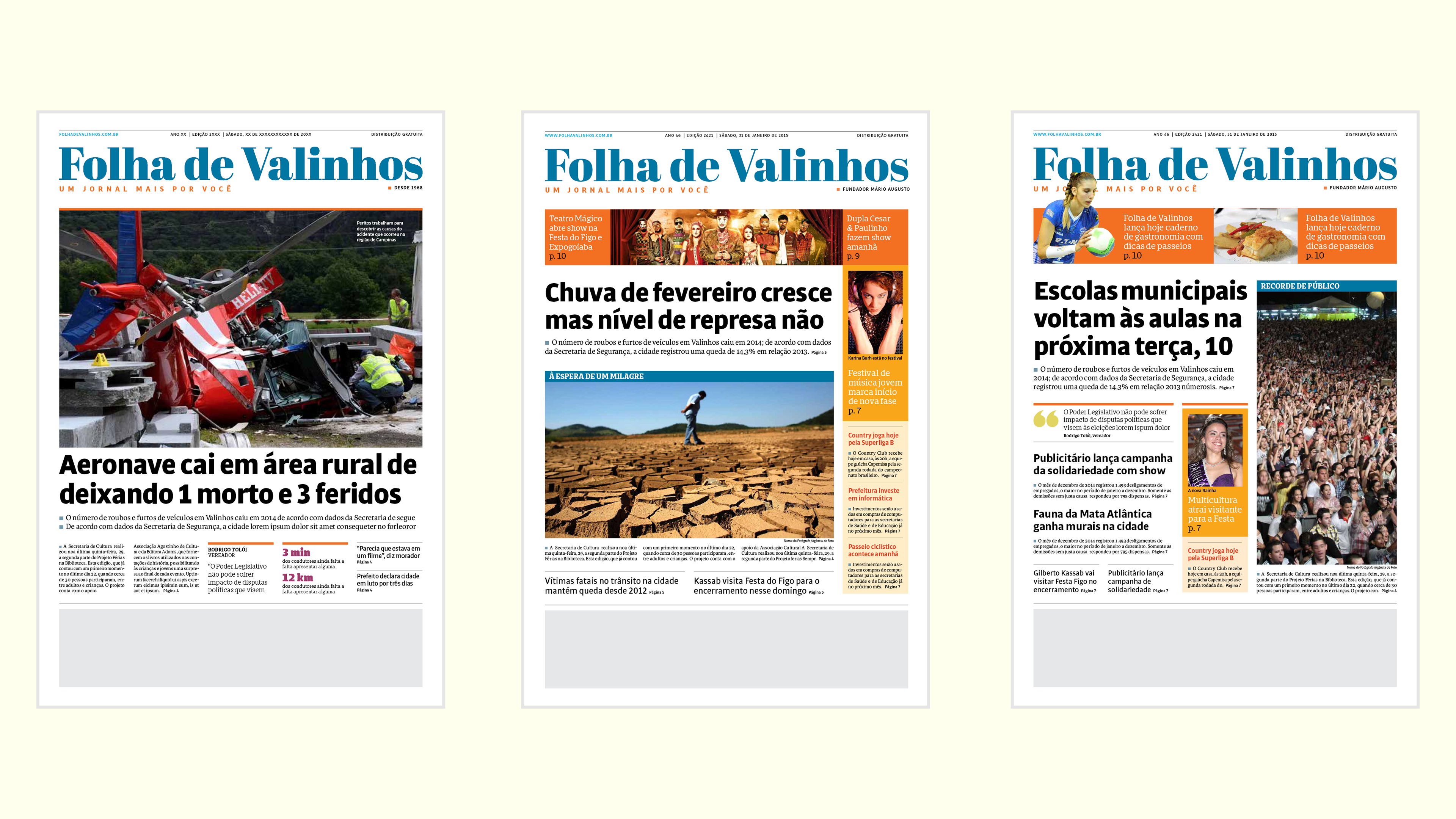 Desenvolvimento de projeto gráfico e nova linguagem visual para o jornal semanal de Valinhos, interior de São Paulo. Realizado em parceria com a Notext.