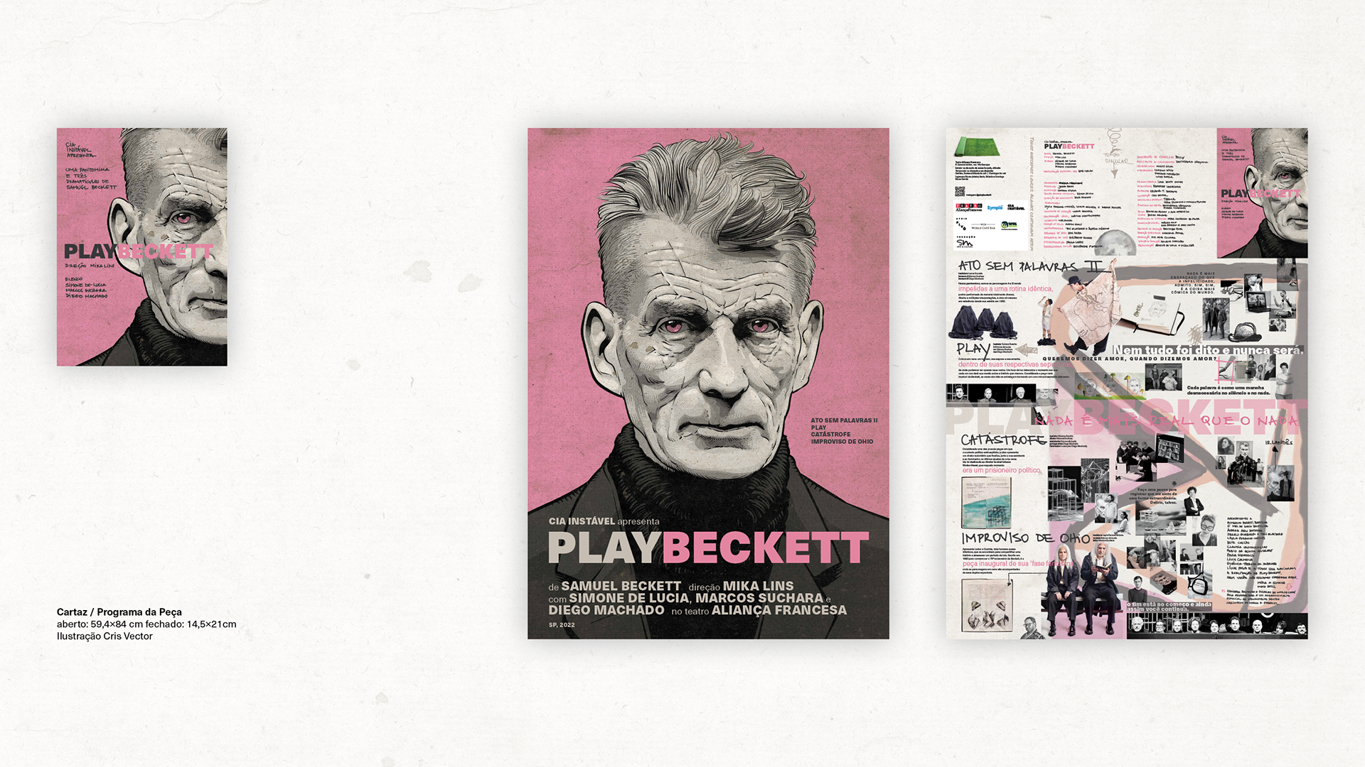 Design gráfico para a peça de teatro Play Beckett, dirigida por Mika Lins, que ficou em cartaz no Teatro Aliança Francesa, em São Paulo. Com Thea Severino. Ilustração Cris Vector.