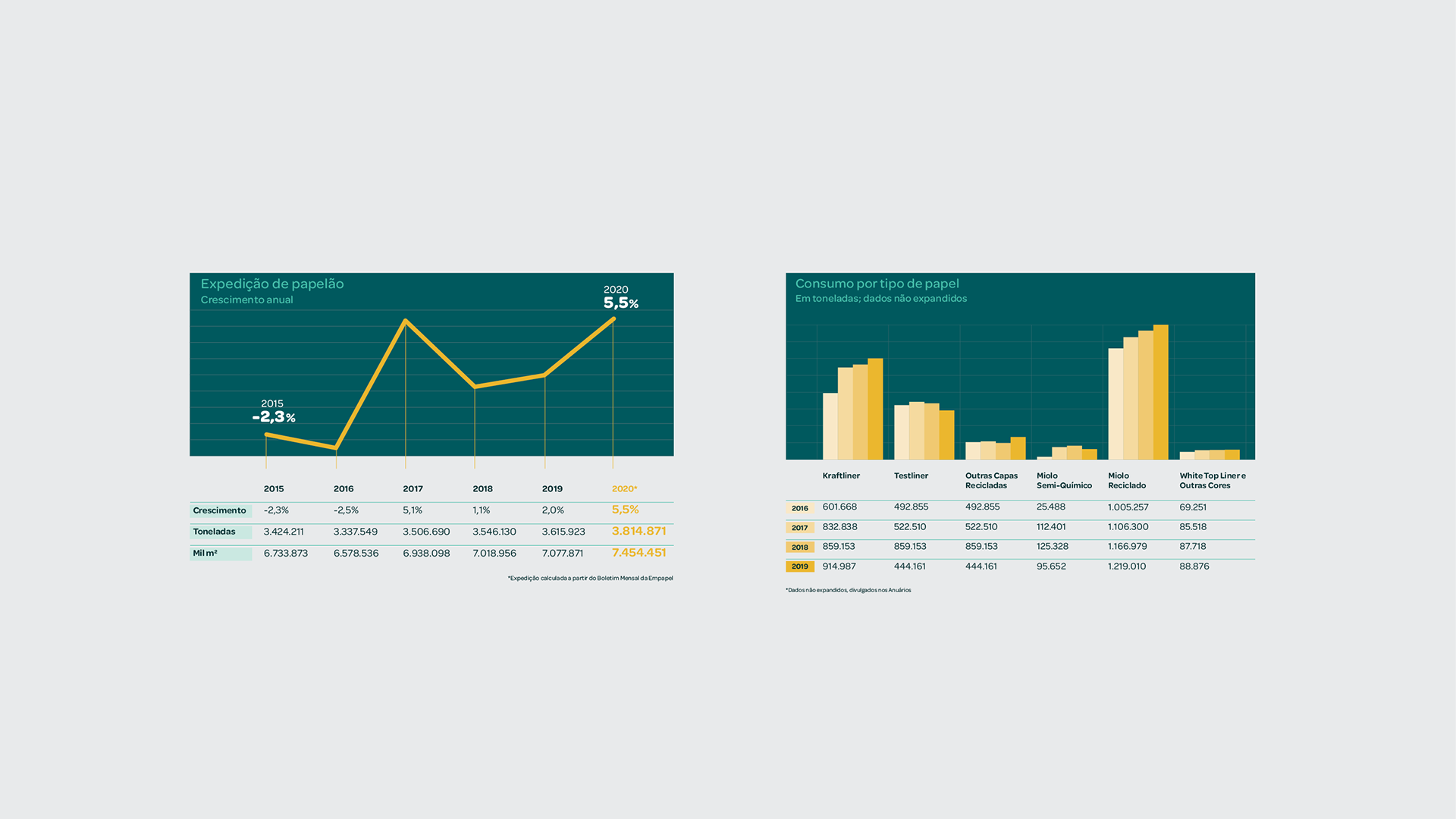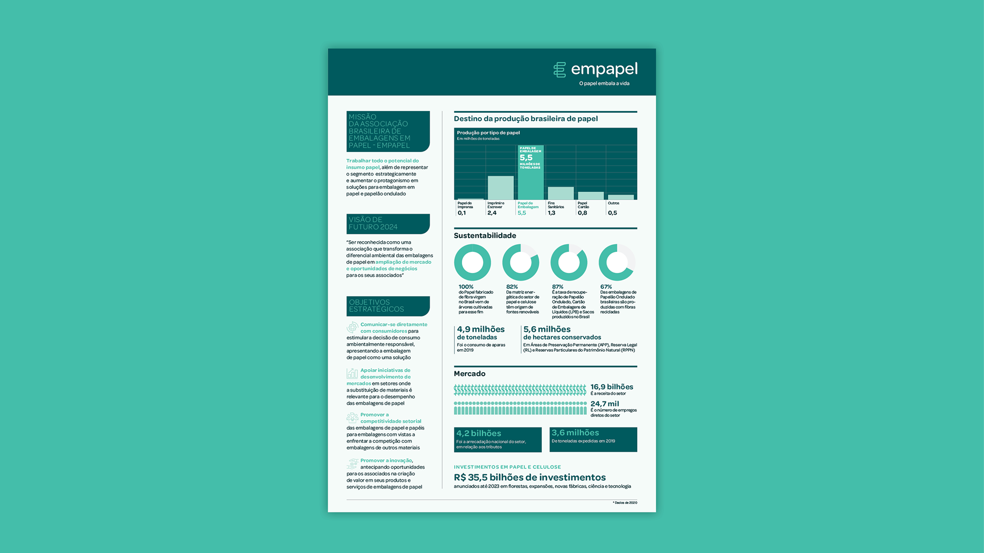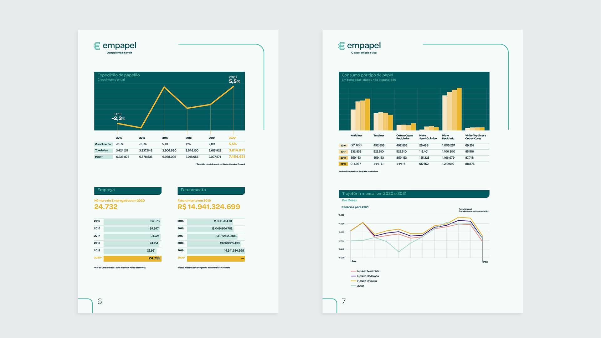 Desenvolvimento de linguagem gráfica, criação dos infográficos e diagramação de relatório sobre mercado e consumo de papel.