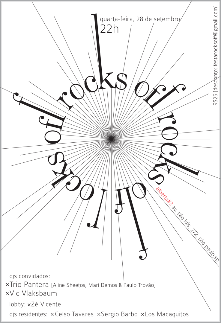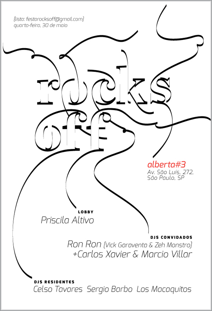Série de cartazes que exploram a tipografia como imagem para ser a principal informação visual. Realizada entre 2011 e 2012, foi tema da mostra “O Tipógrafo Dançarino”.